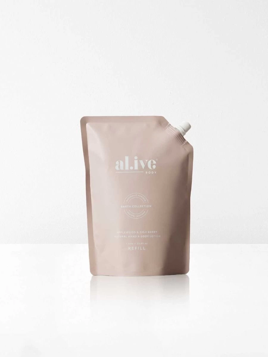 The Al.ive 1 litre refill pouches are designed to refill your existing al.ive body bottles whilst helping to reduce the amount of plastic ending up in landfill. Our refill pouches use 88% less plastic and refill your 500ml al.ive body bottle twice. Our pouches are 100% recyclable, just peel off the sticker from the front and back of the pouch and dispose in your recycling bin at home.