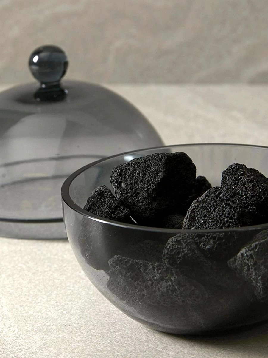 - Luxury smoky black, hand-blown glass that is itself a stunning objet.