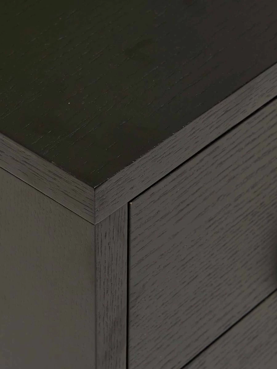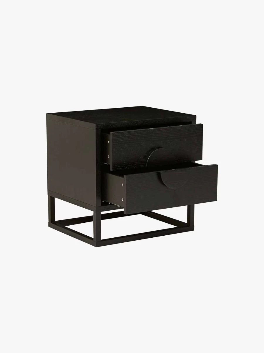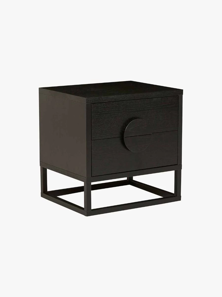 The classic bedside table with a bold twist. The Benjamin Bedside features classic strong lines and merges it with a modern touch for an eclectic look. The wood case offers spacious drawers where all your nighttime essentials are easily at hand. A solid wood button-like handle adds an innovative touch and showcases your distinct personality