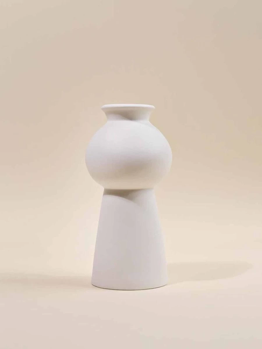 The Bianca Vase is that simple white ceramic vase that adds a touch of shape and form when styling. Its wide belly top is a compliment to the bottom belly of the Iris Vase. Water tight sealed to hold your fresh florals.Â