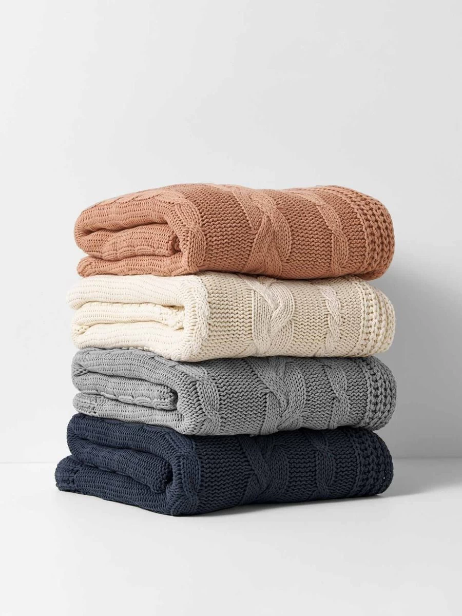 Cable Knit Throw - Winter White -Homewares Shop cable knit throw stack