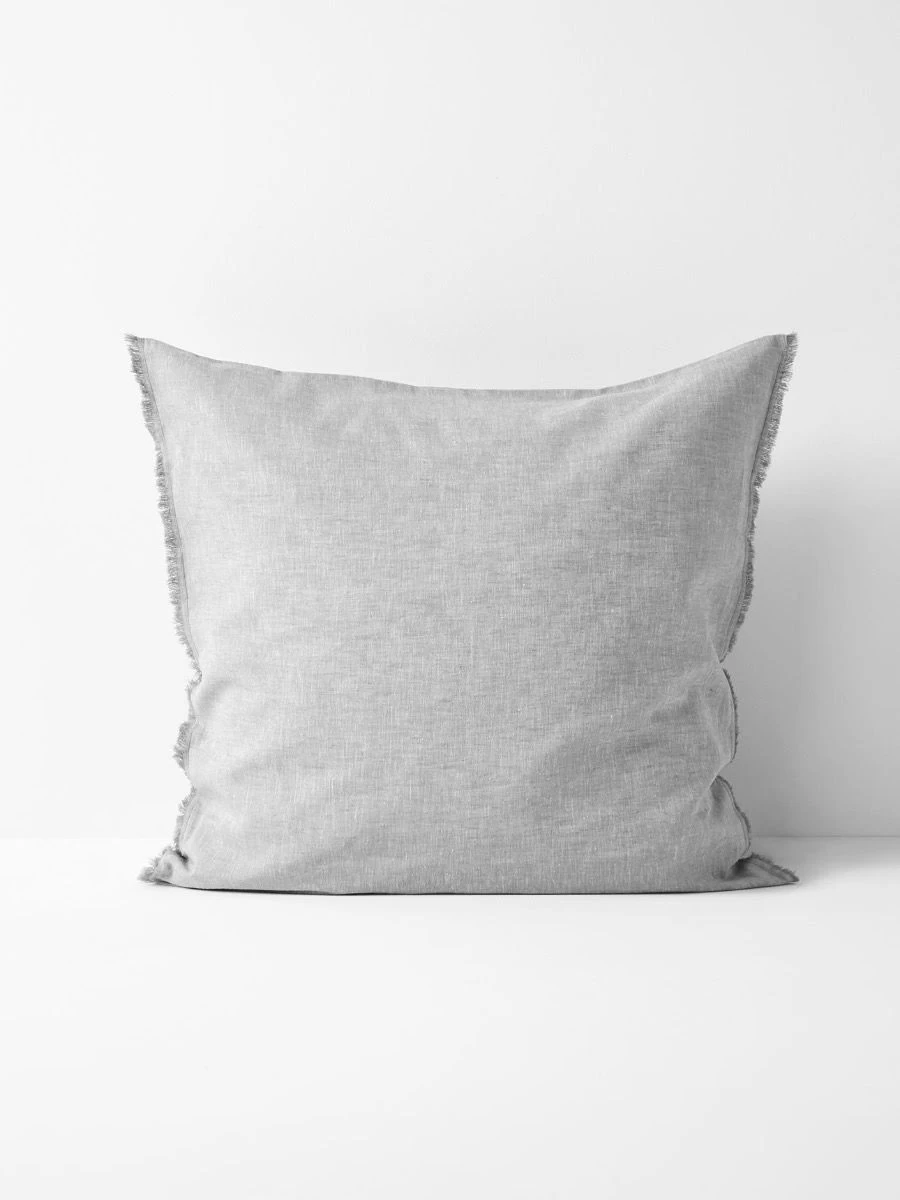 Chambray Fringe European Pillowcase - Dove -Homewares Shop chambray fringe bedlinen dove