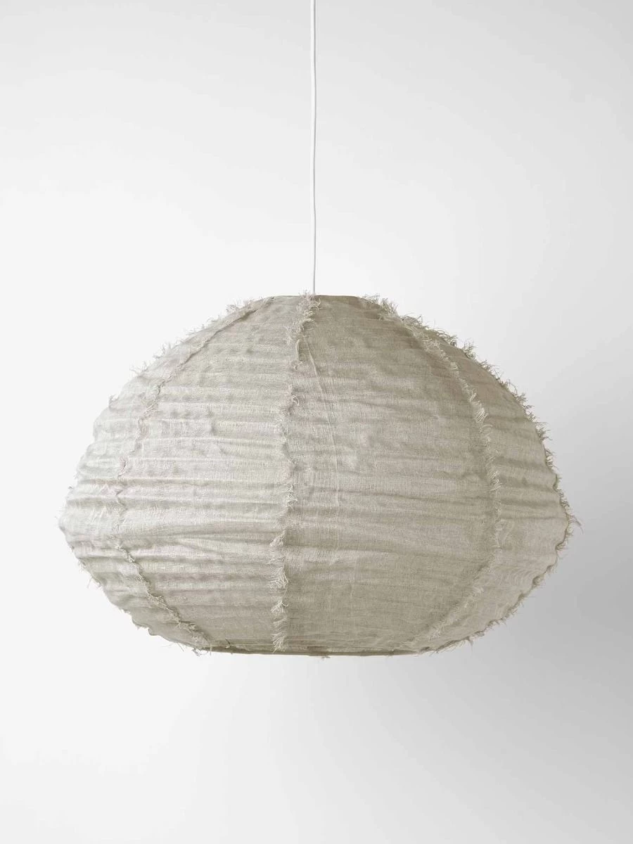 Our Cloud Fringed Linen Oval Pendant in Dove is a beautiful and unique addition to any home. Hand-crafted in elegant European Flax® certified pure linen, an eco-friendly traceable fibre.