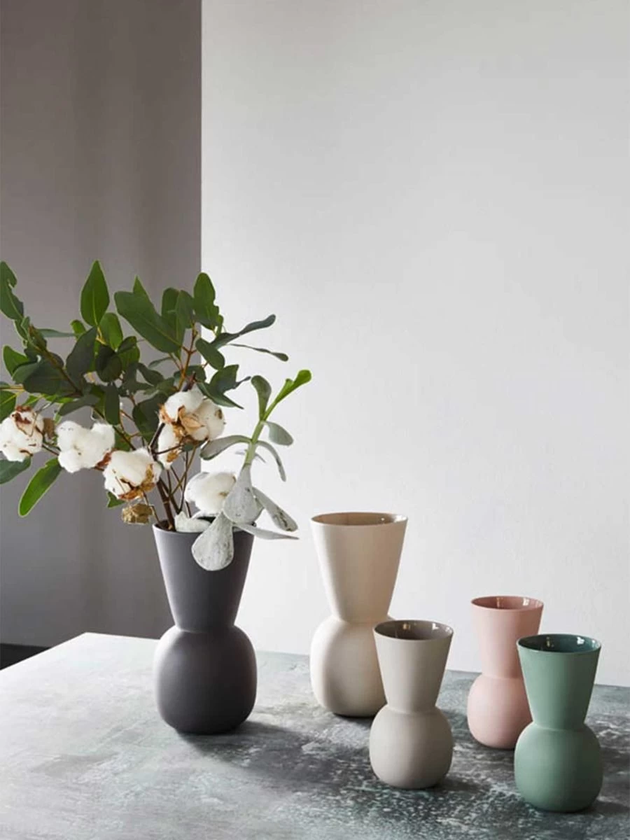 Experience the artistry, craftsmanship, and natural beauty of the cylindrical shaped Cloud ceramic bell vase by Marmoset Found.