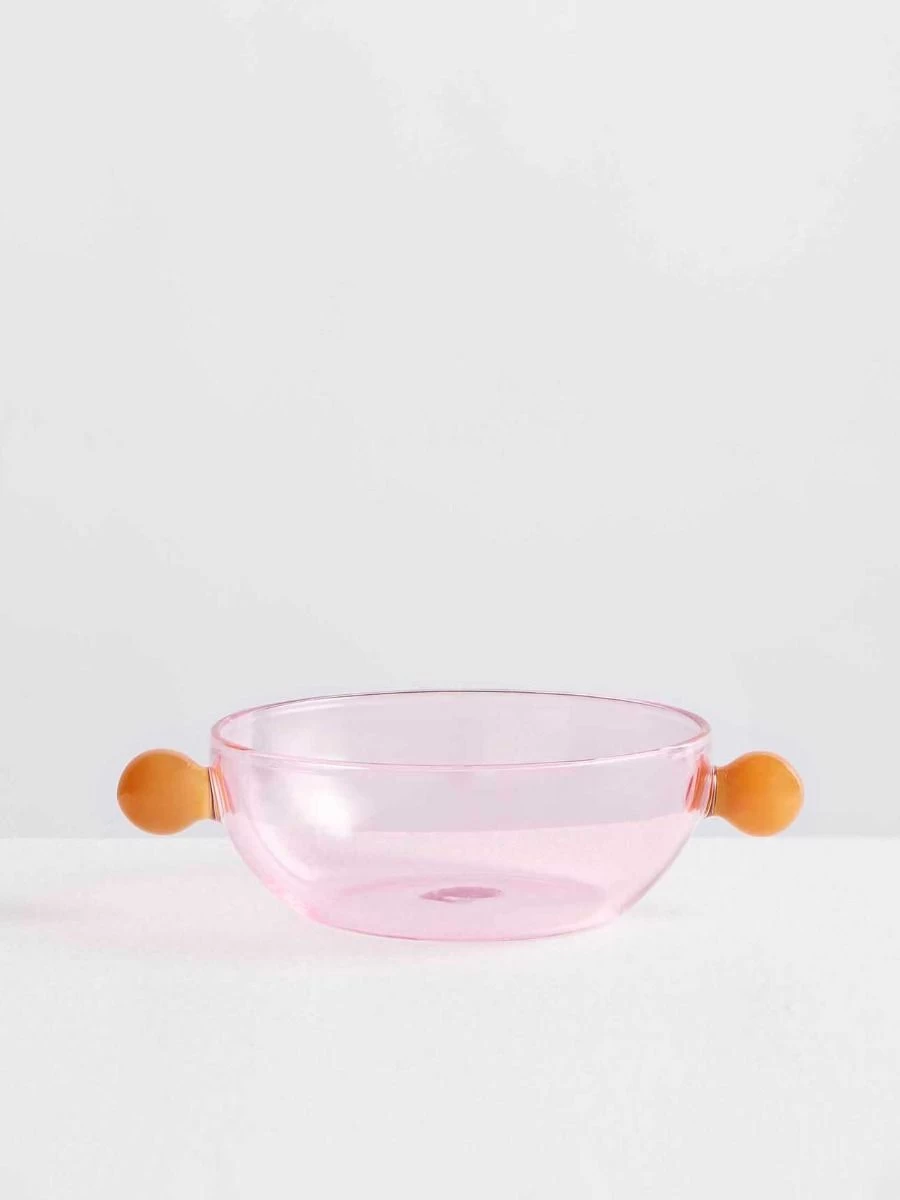 The DotDot bowl has been expertly hand crafted from transparent pink and milky yellow borosilicate glass. A dainty dish with two oversized glass ears that punctuate every tabletop with a sense of joy – no occasion necessary!