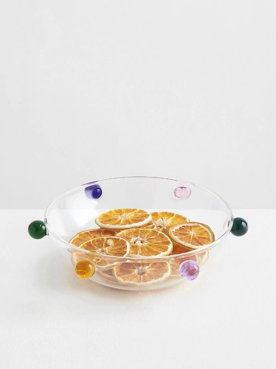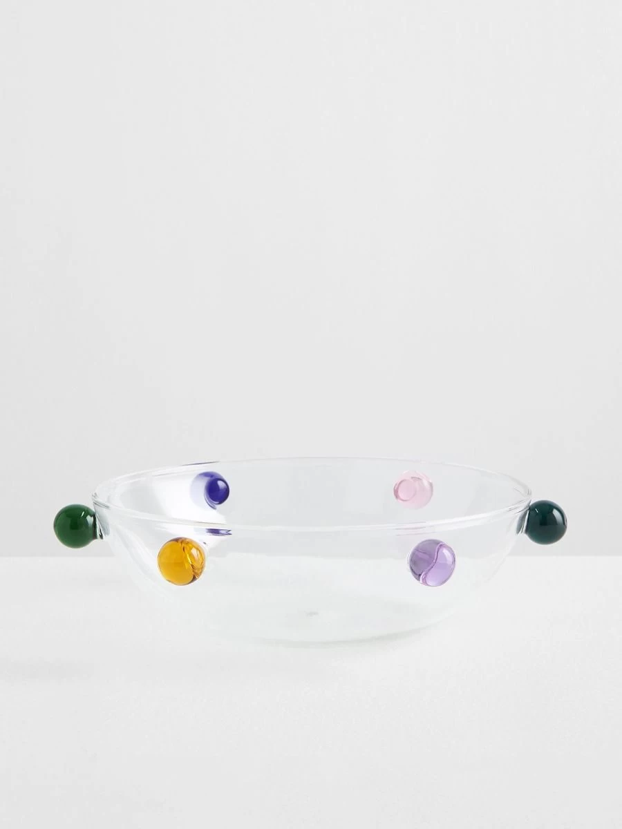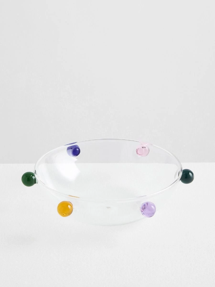 The DotDot platter is a playful glass platter designed to hold any number of delicious things you can think of! It is delicately hand made from clear borosilicate glass and adorned with multicoloured balls. Perfect for everyday, the DotDot platter does not need an occassion to celebrate being the centre of your tabletop!