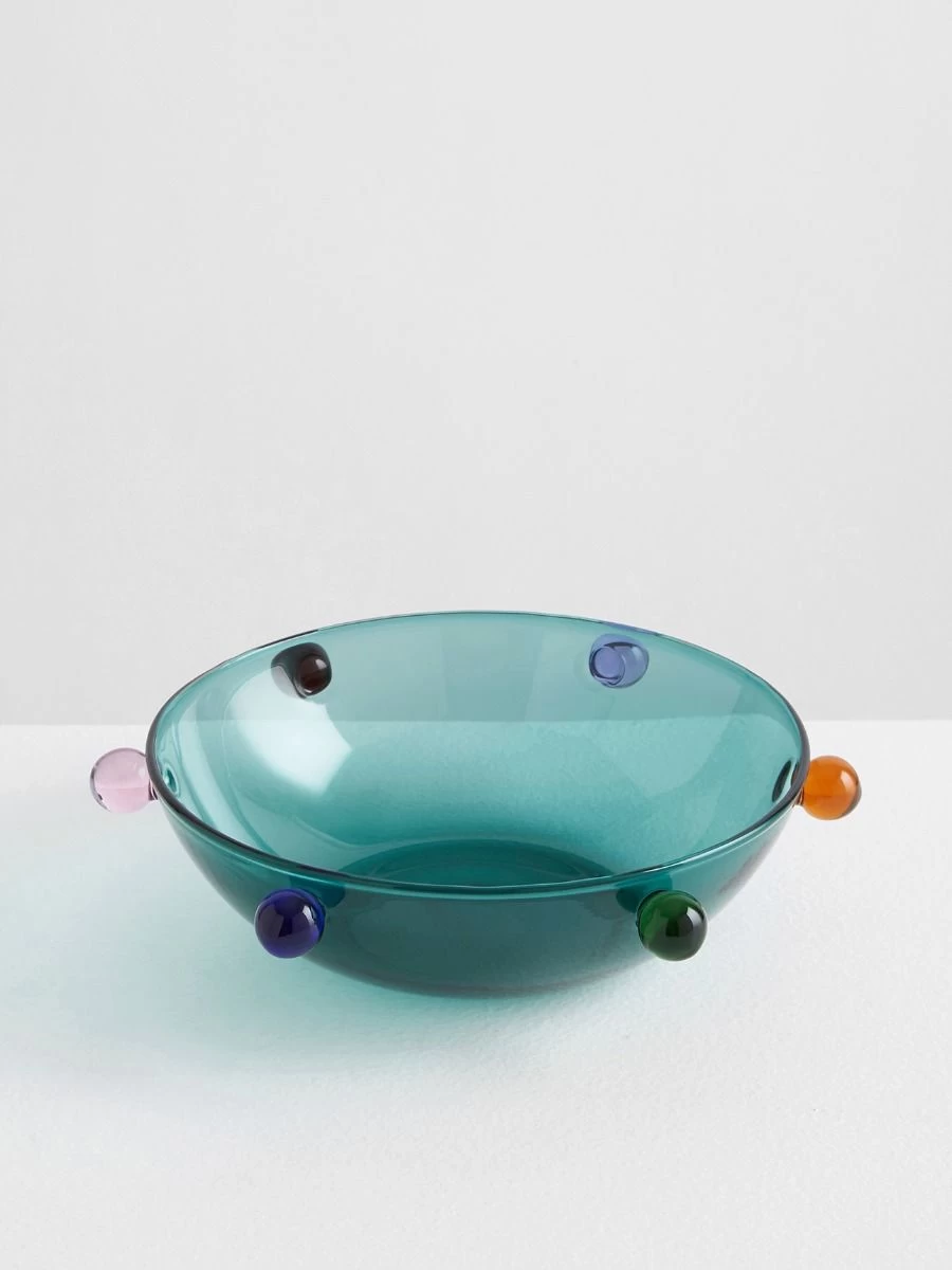 The DotDot platter has been expertly hand crafted from a transparent teal and delicate borosilicate glass. Each bowl features the Maison Balzac star logo on its base.