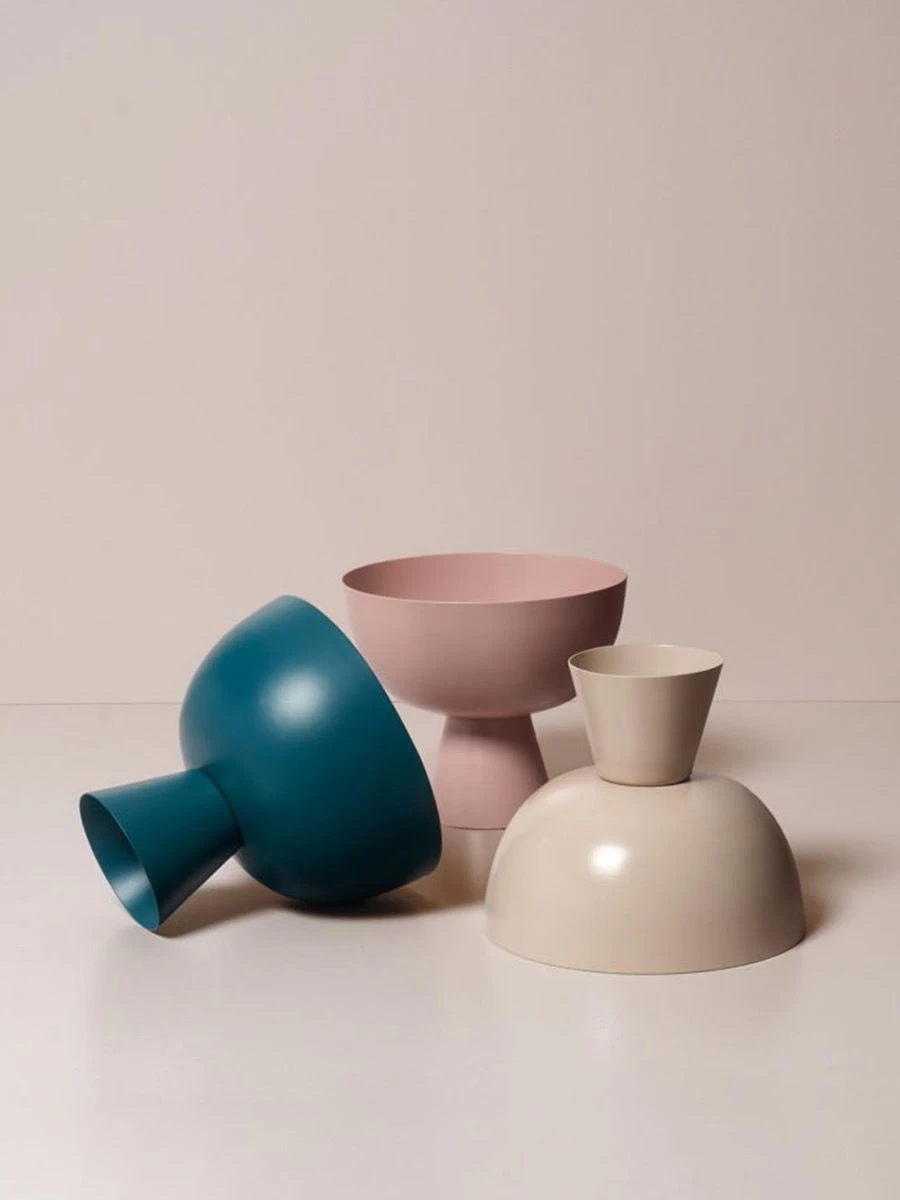 Australian designed vessel made from spun metal, powder coated and ideal for flowers or planters with an indoor or outdoor use.