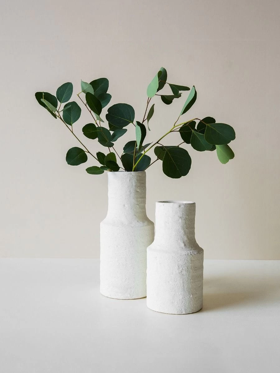 Fusing beautiful, raw finishes with timeless mid-century form, our range of Eva vases have been handcrafted from the highest quality earthenware. With a classic shape, almost reminiscent of a vintage milk bottle, the Eva has just the right amount of texture that is the perfect blend of raw and refined. Perfectly paired with dried florals like bunny tail grass and baby’s breath, or with fresh sprays of eucalyptus leaves.