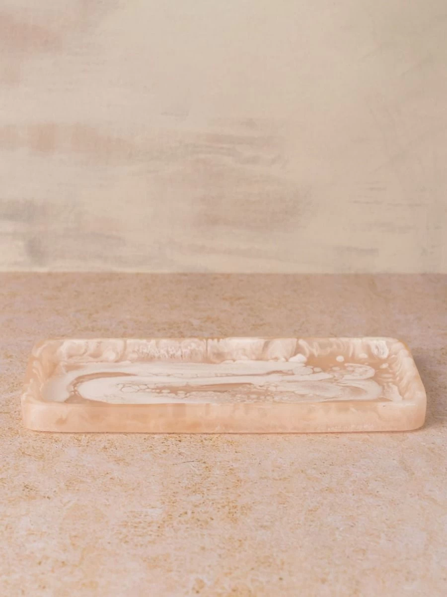 Introducing the Saarde Flow Bathroom Caddy Tray in Peach Blush – the epitome of functional elegance. Elevate your bath space with this meticulously crafted tray, designed to keep your essentials organized in style. The delicate peach blush hue adds a touch of sophistication, seamlessly blending with your decor. Its versatile design accommodates various items, making it a must-have accessory for your daily routine. Elevate your self-care experience with the Flow Bathroom Caddy Tray – where practicality meets aesthetic charm.