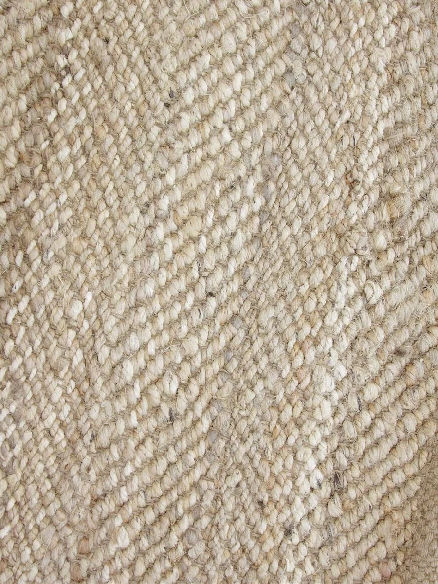 Braided in a beautiful herringbone pattern using thickly twisted yarns of 100% natural jute into a stunning textured design adding organic simplicity to any room.