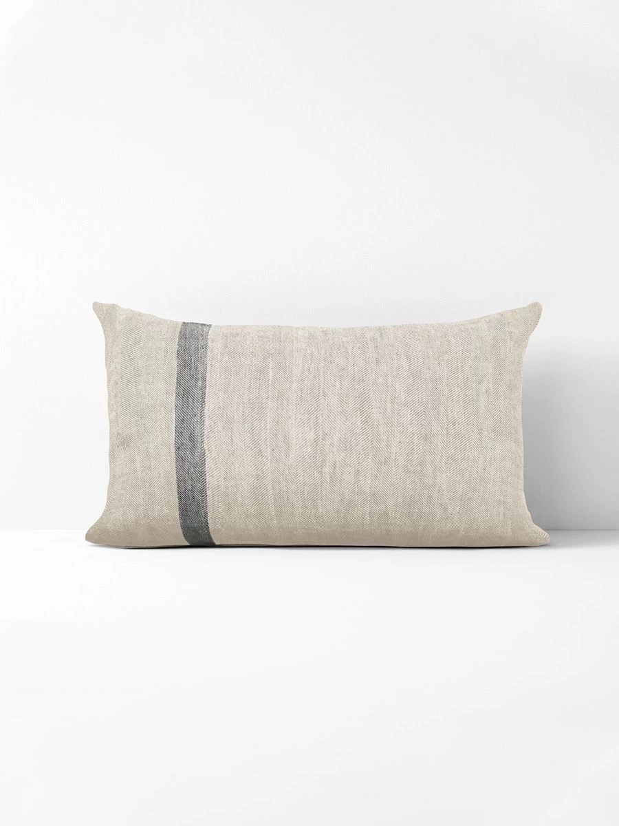 Our classic, Herringbone Rectangle Cushions in Natural have been woven in pure linen using natural, hand-woven linen fibres. Featuring a beautiful rich texture and an elegant contrast stripe, linen is an eco-friendly and bio-degradable fibre that does not require irrigation to grow. Our linen is a hand made product, from dying, drying naturally in the sun, to finally being hand loomed by local artisans in India in one local community. All of our dyes used are natural and all by-products used in dying, including water and fabric offcuts are recycled and reused. We are very proud of the hand-made quality of our products, where each piece retains its own individual charm.
