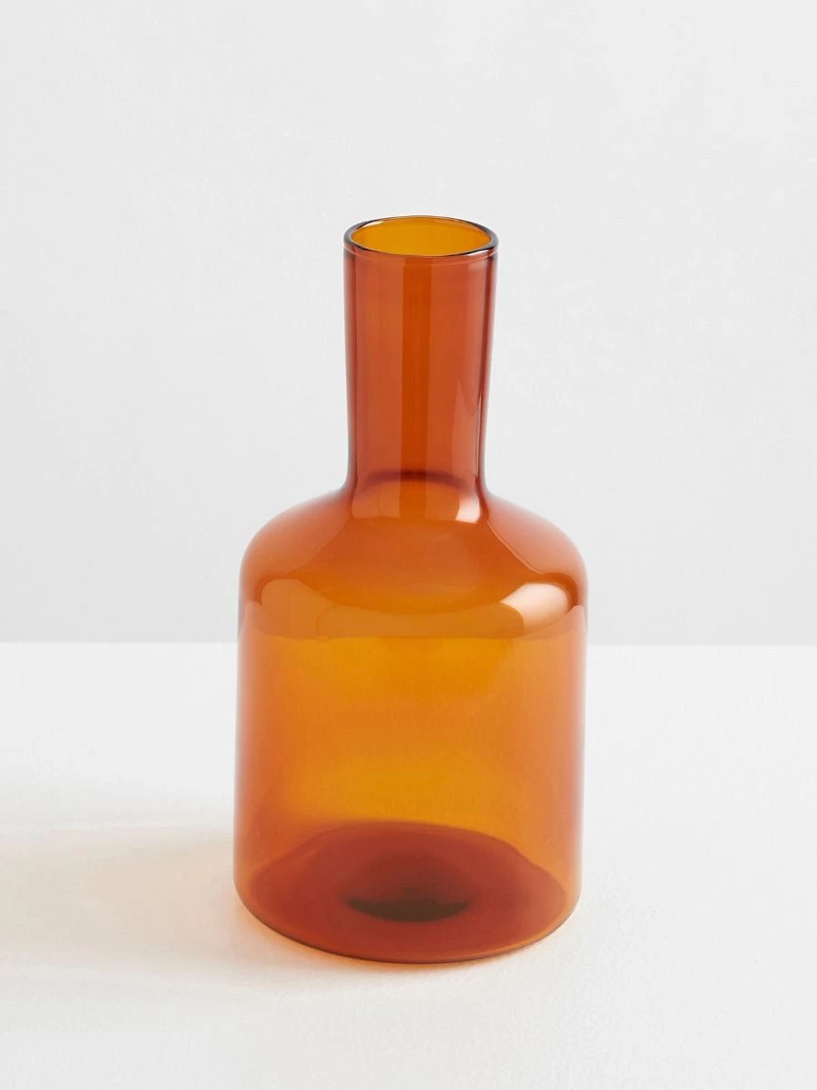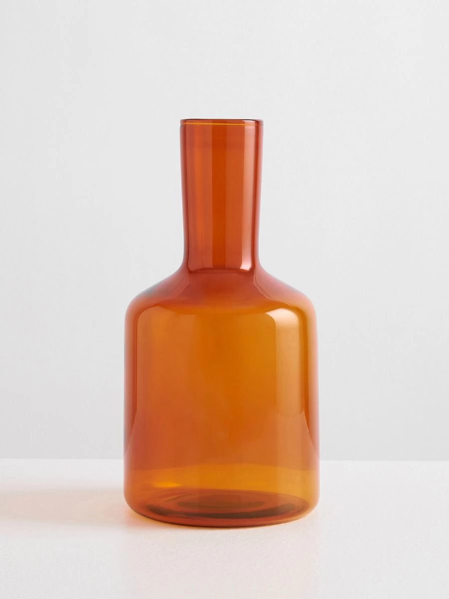Expertly crafted from amber Borosilicate glass and inspired by the traditional drink ware sets displayed on bedside tables in France. The XL J’ai Soif carafe’s sophisticated design lines and bold colour adds extraordinary pleasure to the simple act of drinking water.