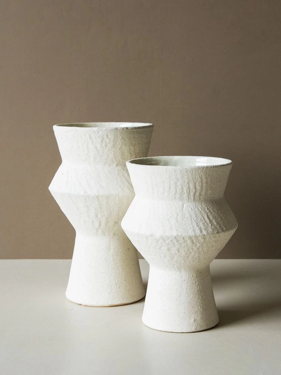 Each piece has the perfect amount of texture and features a subtle geometric pattern on its surface. We love pairing our Larson with a bunch of native wildflowers to beautifully complement its earthy tones.