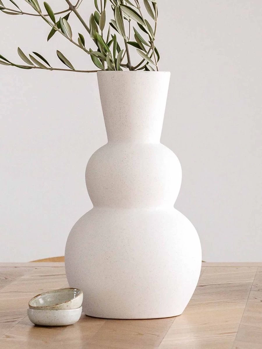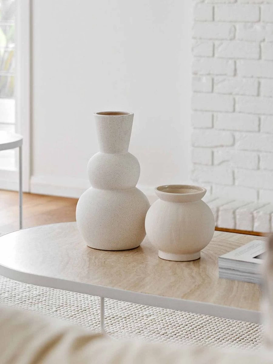 Welcome the sculptural beauty of the Lola Vase to your home, from your built-ins, entry ways, consoles to wherever you wish this piece should be displayed. The curves of this piece are what make it so unique. With its textured bulbous form and cream matte glaze, the Lola Vase is a perfect statement piece exhibiting organically lived-in yet modern and charming. Â