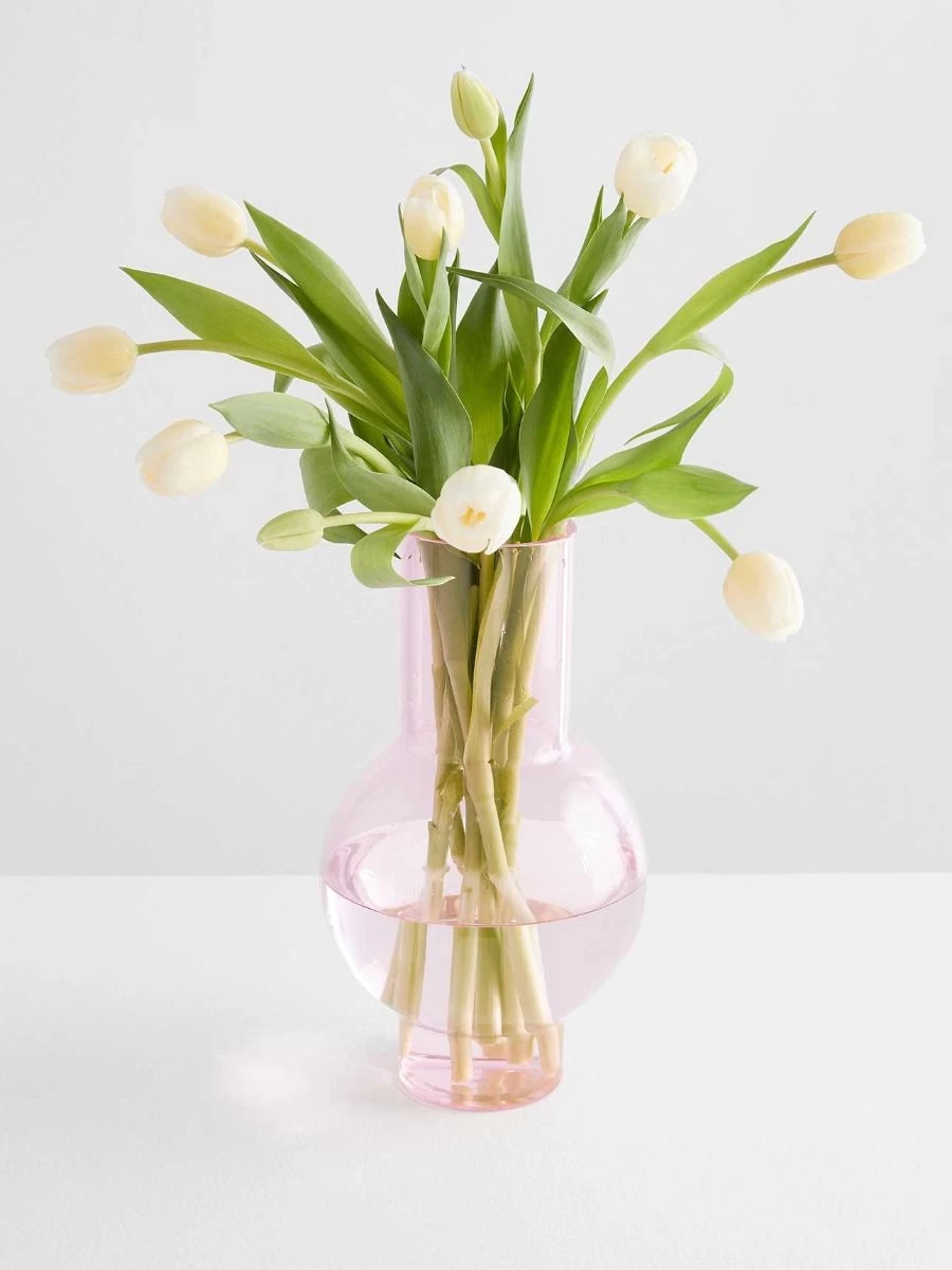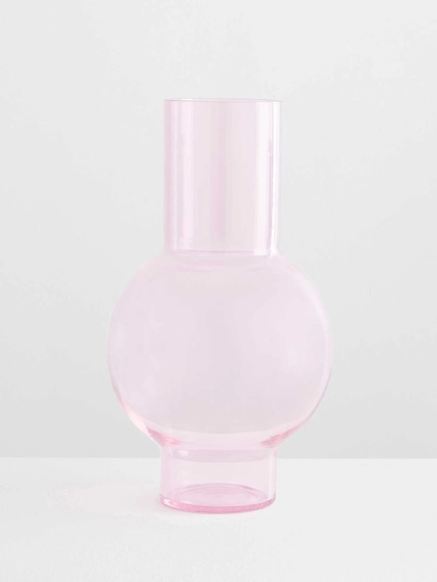 Our beacon of light, the Loulou XL vase is all grown up and dressed in a demure pink borosilicate glass. Still playful at heart, she invites you to see how many flowers can float within her buoyed bowl.