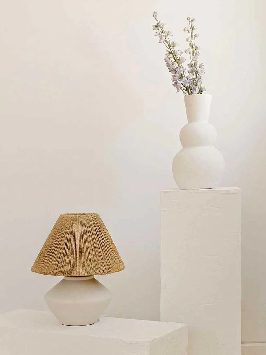 The Lucia Table Lamp’s modern form married with the natural rope lampshade lends an added dose of dimension wherever its placed.