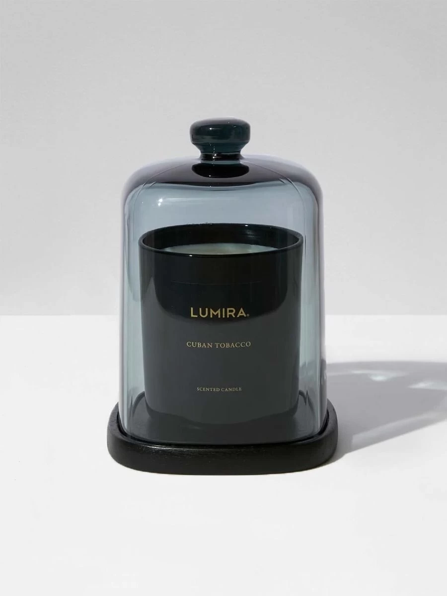 The perfect accessory to display your LUMIRA luxury scented candles and add understated style to your home. This luxurious smoke glass dome is paired with a black wooden base and will not only protect your candles fragrance, but act as a statement piece in your space.