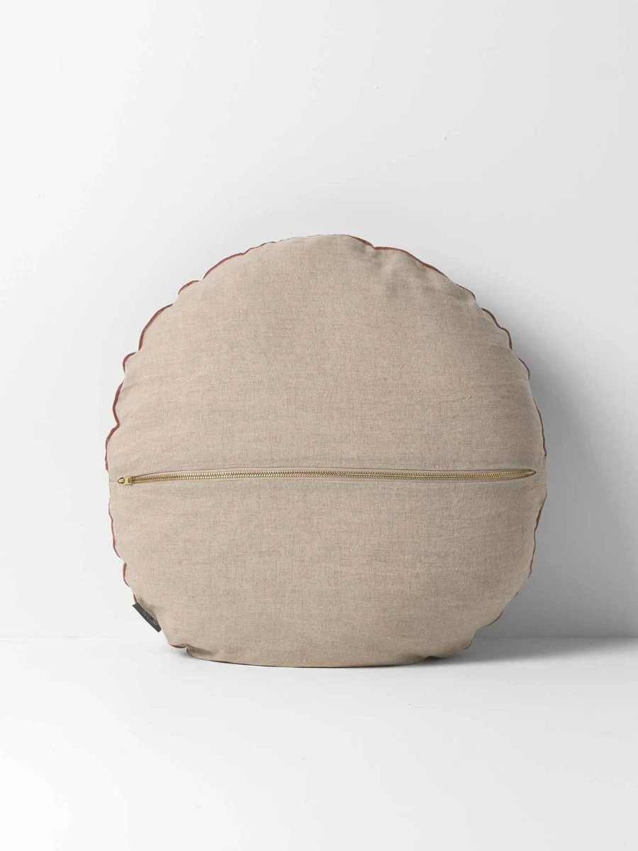Pure Cotton Velvet reversing to Pure Linen. Our round Velvet cushions have been woven in a luxurious pure cotton velvet, finished with our signature gold zipper and available in beautiful range of tones.
