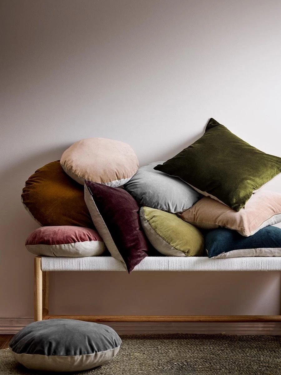 Pure Cotton Velvet reversing to Pure Linen. Our Velvet Cushion in Khaki has been woven in a luxurious pure cotton velvet, finished with our signature gold zipper.