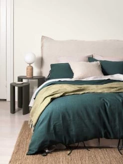 Sleep soundly under our Maison Linen Cotton Quilt Cover in Indian Teal. Our luxurious Maison Collection is crafted from the highest quality European certified Linen which is grown in the coastal regions of France and blended with sustainably sourced cotton. This exclusive combination elevates the bed linen’s natural softness, allowing you to experience a restful night’s sleep and much-needed comfort and relaxation.