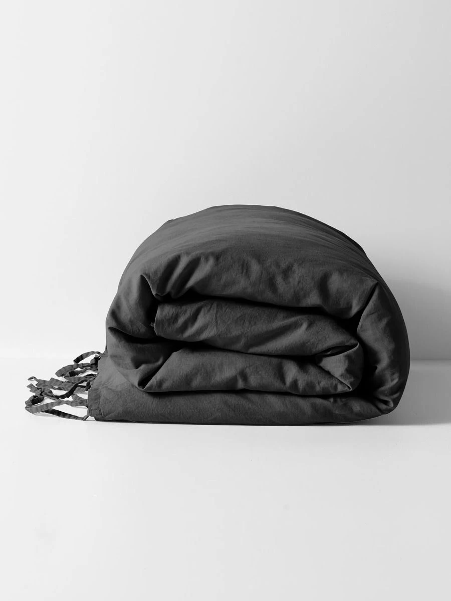 Sleep soundly under our Maison Linen Cotton Quilt Cover in Shadow. Our luxurious Maison Collection is crafted from the highest quality European certified Linen which is grown in the coastal regions of France and blended with sustainably sourced cotton. This exclusive combination elevates the bed linen’s natural softness, allowing you to experience a restful night’s sleep and much-needed comfort and relaxation.