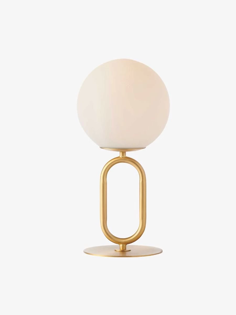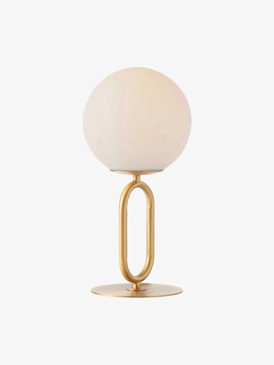 The Margot desk lamp features refined contemporary aesthetics. Its elegant design showcases a frosted glass sphere shade that delicately diffuses light, illuminating the surroundings from every angle.