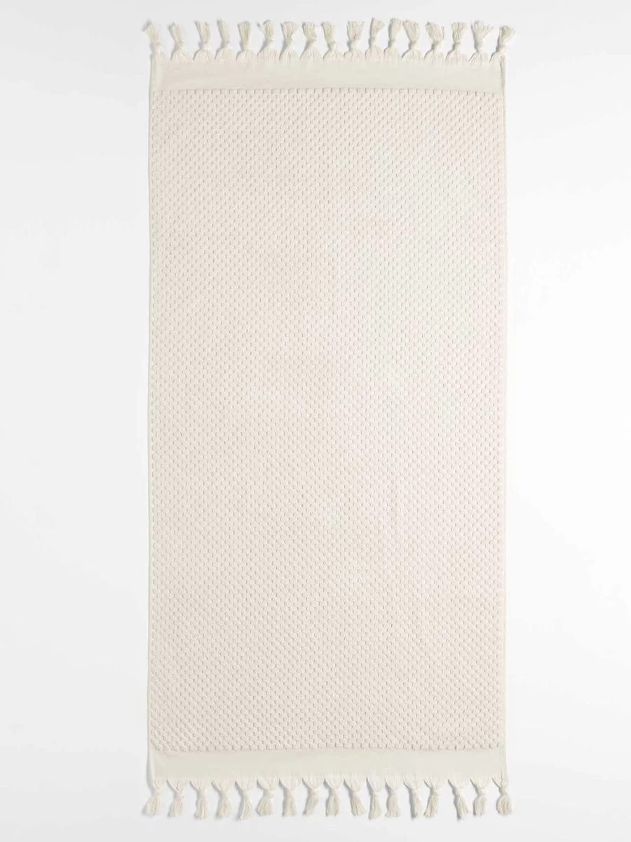 The Milos Bath & hand towels feature hand knotted fringes, and the Milos collection is woven with Sustainably Sourced Cotton.Â