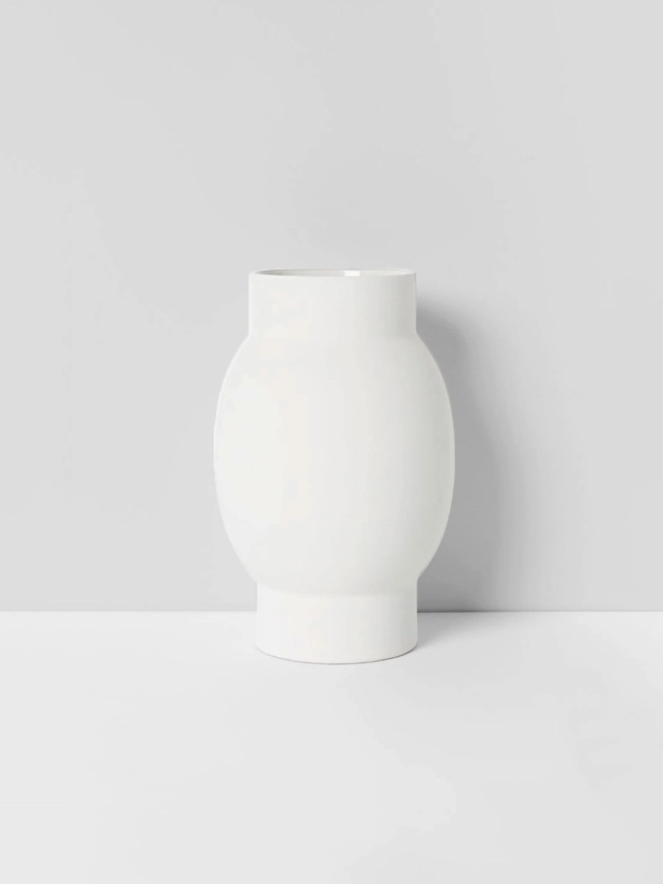 A classic white fine ceramic vase, delicate and sculptural decorative piece to use in your living space.