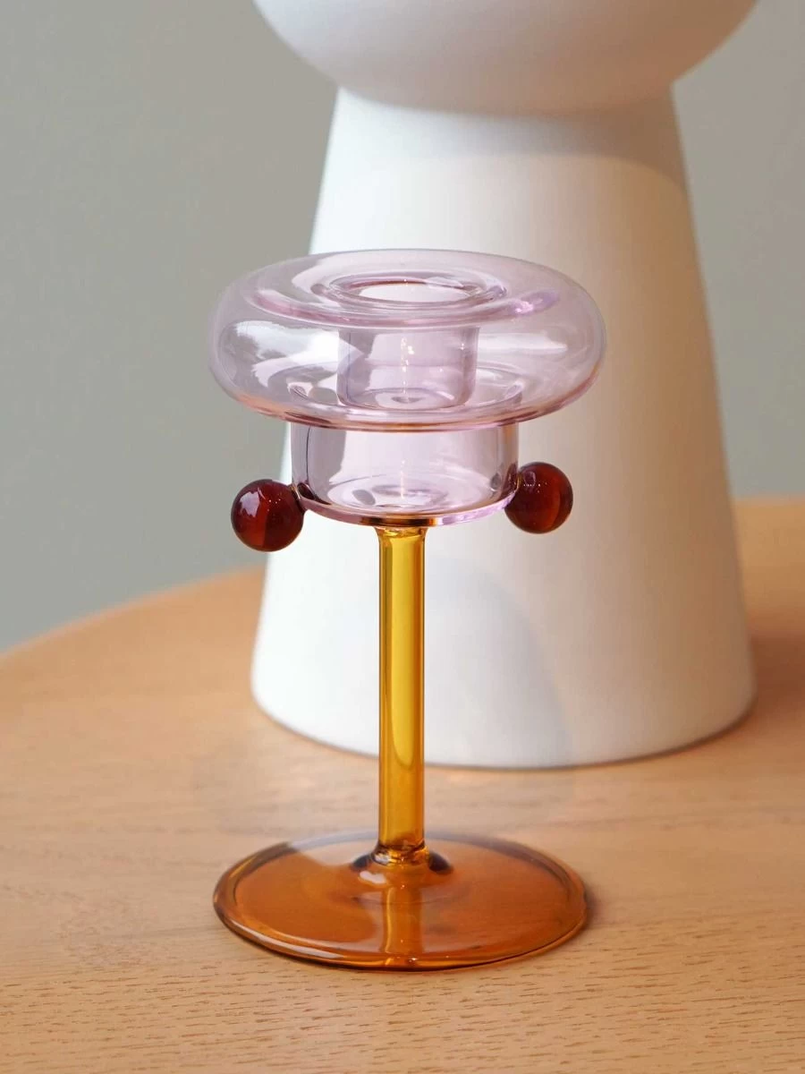 Imagined on a warm afternoon spent drawing in wet sand, the petit pompom candle holder conjures images of globular sea-like creatures suspended in the clearest waters. Gently turn their glass perch to fully admire their unusual beauty, floating as if they are rising from the depths to offer you their azure and amber light. If you are patient you may see his large glass friend, the grand pompom, they keep each other company telling stories about all the other pretty jewels spotted on their travels through the waters depths.
