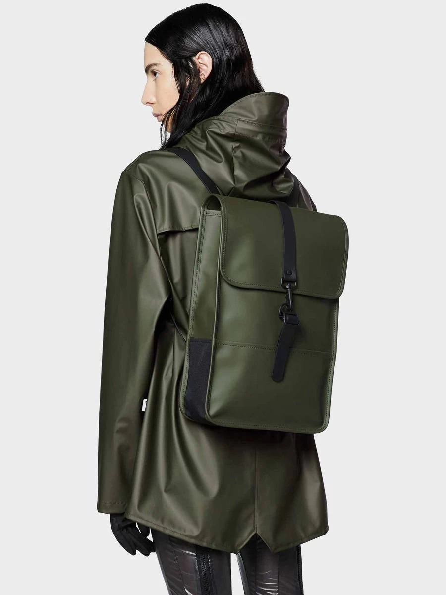 Backpack Mini is cut in Rains’ signature waterproof PU fabric, engineered for carrying strength, durability, and a smooth feel.