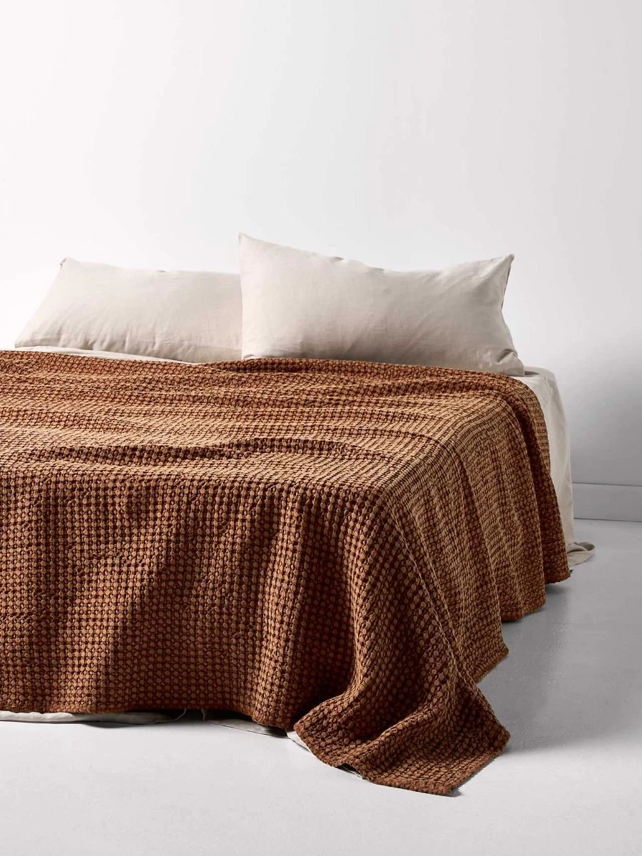 Feel at home with our cozy waffle bed cover. Softly textured and available in a soothing palette of natural tones, our pure cotton bed covers are the perfect way to add that extra layer in the colder months. Their beautiful tactile waffle texture, paired with a stonewash finish, is the ideal way to add texture and comfort to any room of your home this season.