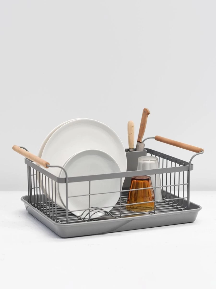 This simple, but beautiful dish drainer rack by Yamazaki fits in next to any sink and looks great in any kitchen. It can hold a variety of plates, bowls, dishes, glasses or utensils for drying. As stylish as it is practical, made from lightweight, powder coated steel and wooden handles, which are a signature of the Tosca range. The utensil holder hangs on the side of the rack to enable it to be placed to suit. Awarded the best of 2020 Dish Racks by Apartment Therapy. Designed in Japan, Measures 47cm x 33.5cm x 20cm.